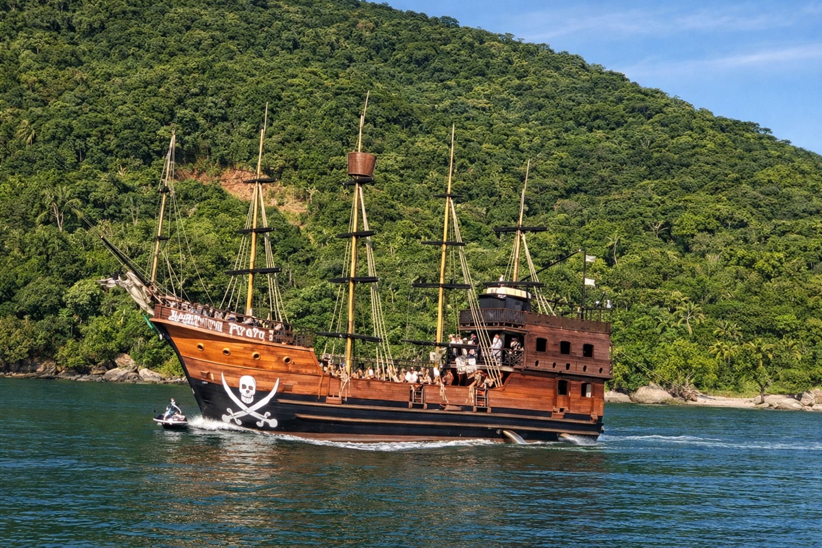 O barco pertence ao Grupo Barco Pirata, responsável por passeios turísticos temáticos; a moto aquática era alugada da Nautiusados, que confirmou a habilitação e regularidade do condutor.