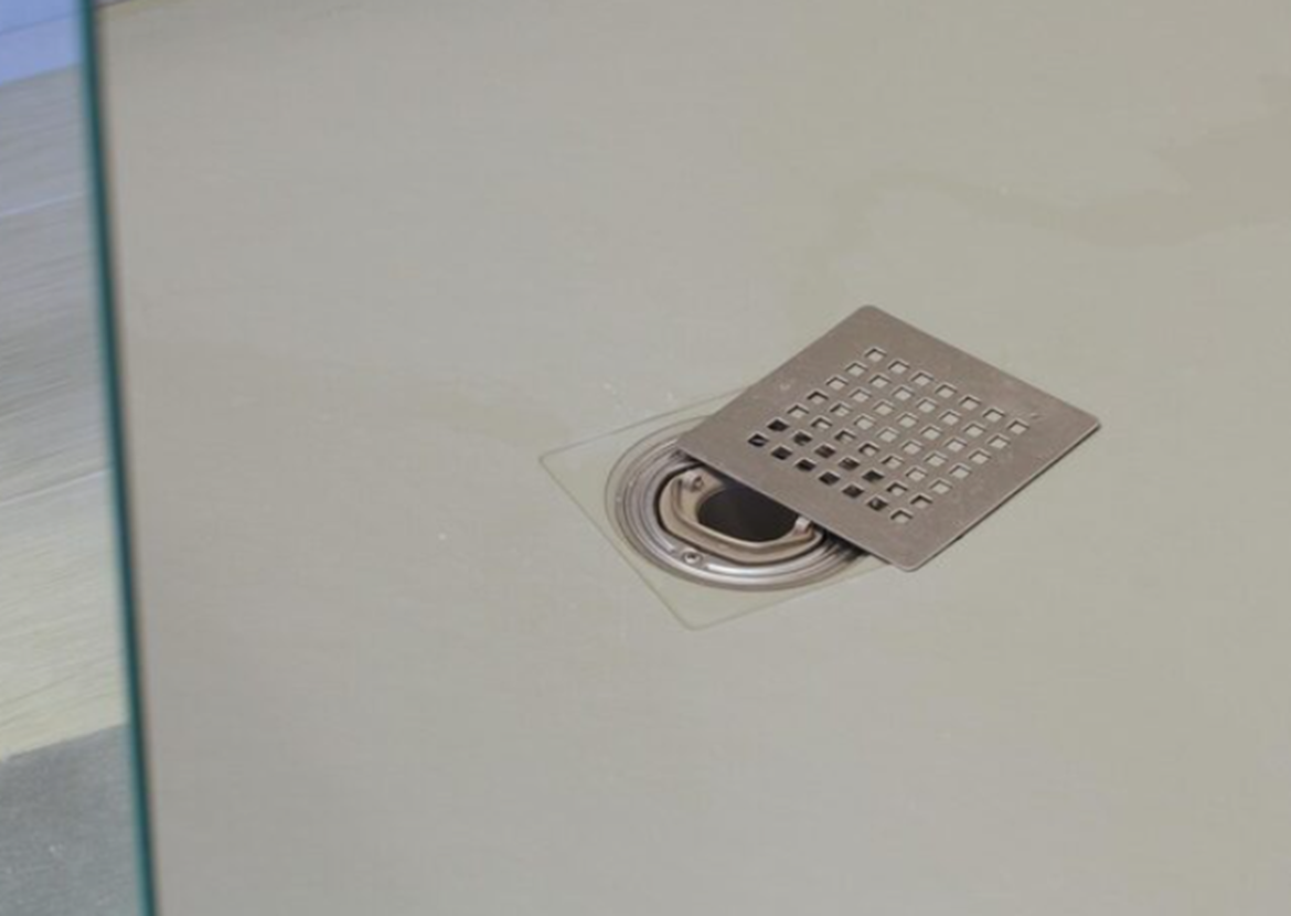 Ralo de banheiro limpo após tratamento noturno para eliminação de mau cheiro de esgoto