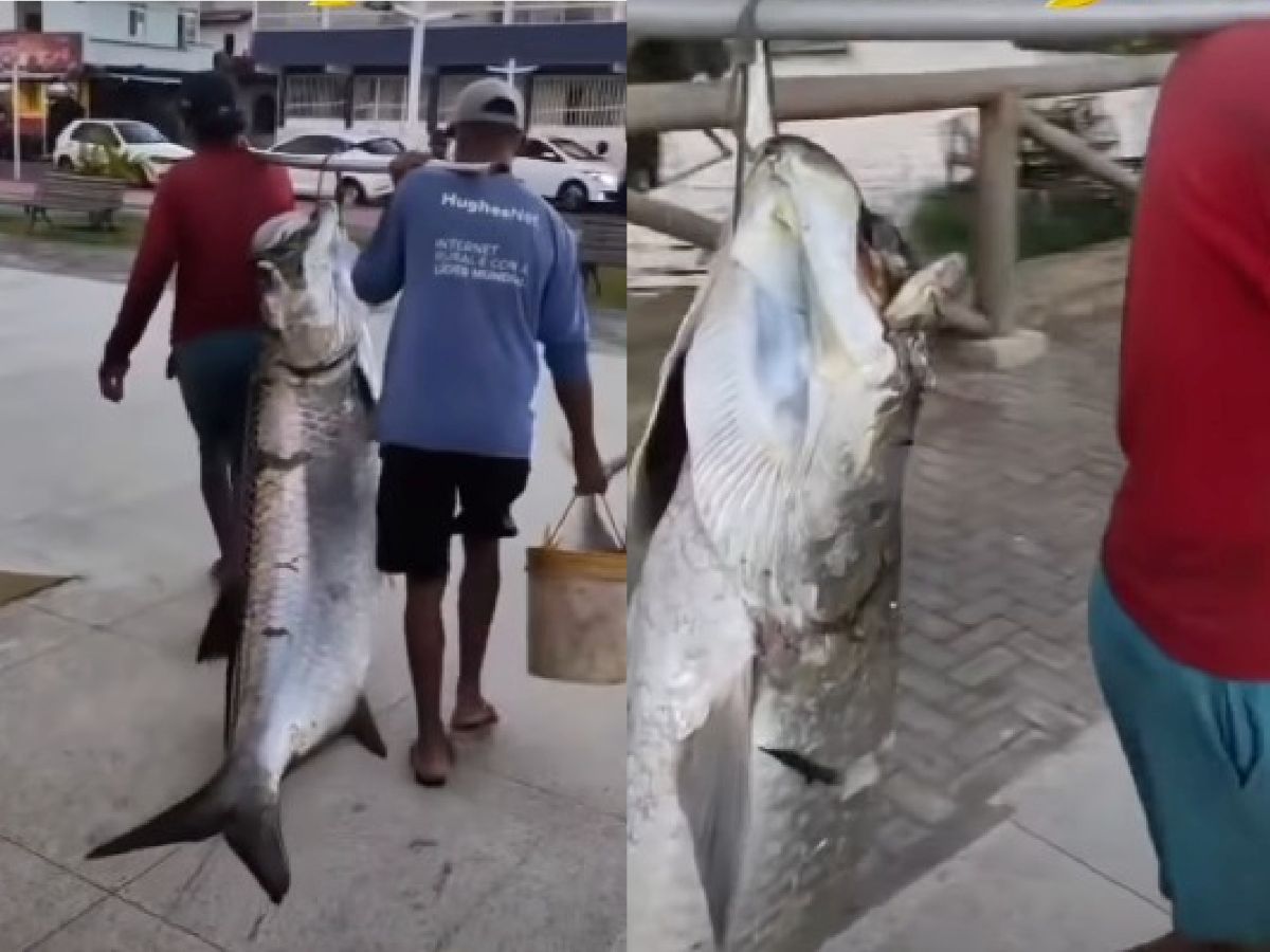 Um exemplar raro de camurupim medindo aproximadamente 1,5 metro foi retirado das águas de Taperoá, localizado no baixo sul da Bahia. O peixe gigante, conhecido também como pirapema ou tarpon, foi capturado por pescadores locais e rapidamente chamou a atenção dos moradores da região, cujas imagens circularam amplamente nas redes sociais. O animal foi retirado do rio após considerável esforço, conforme mostram os vídeos divulgados.